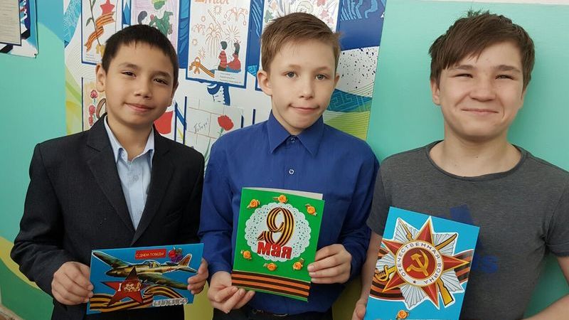 Prior to the Great Victory Day fosterlings of the social shelter for minors together with their teachers met together in a classroom with the aim to join St. George Ribbon campaign by making greeting cards and souvenirs out of Saint George's ribbon.