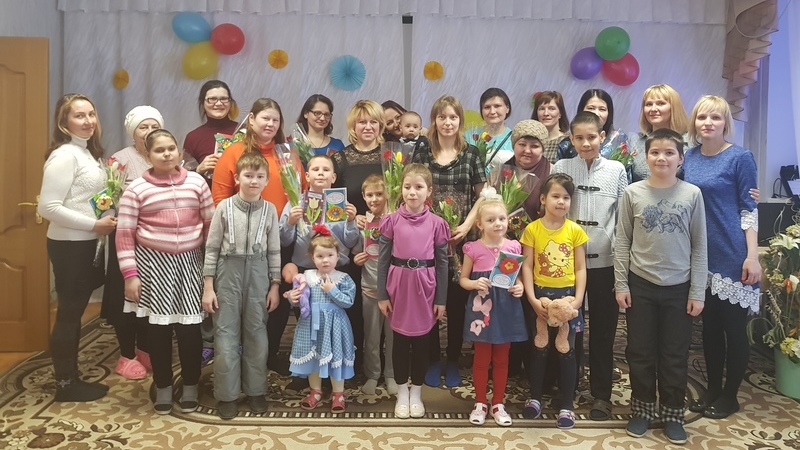 По завершению праздника дети подарили своим мамам красочные открытки, тем самым приятно удивив их, и также присоединились к праздничному чаепитию. Сюрпризом мероприятия были и букеты тюльпанов, любезно предоставленные ООО СБО «Шинник» на благотворительной основе.