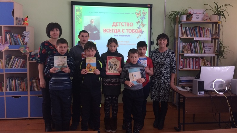 В рамках добровольческой акции «Весенняя неделя добра – эстафета добрых дел» дети, проходящие реабилитацию в Кукморском реабилитационном центре для детей и подростков с ограниченными возможностями «Милосердие», посетили детскую библиотеку. Мероприятие было посвящено 190-летию со дня рождения великого русского писателя Льва Толстого.