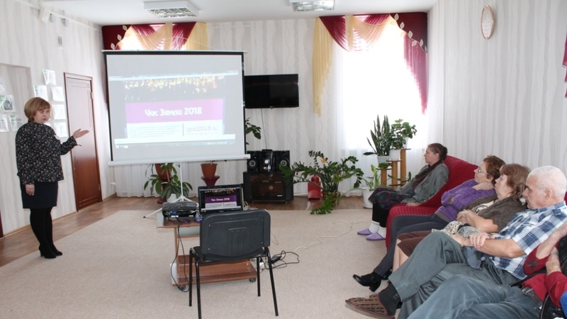 В Менделеевском комплексном центре социального обслуживания населения «Берег Надежды» для пожилых граждан и инвалидов, проходящих реабилитацию, был организован информационный час, посвященный Всемирной экологической акции «Час Земли», которая пройдет 24 марта 2018 по инициативе Всемирного фонда дикой природы.