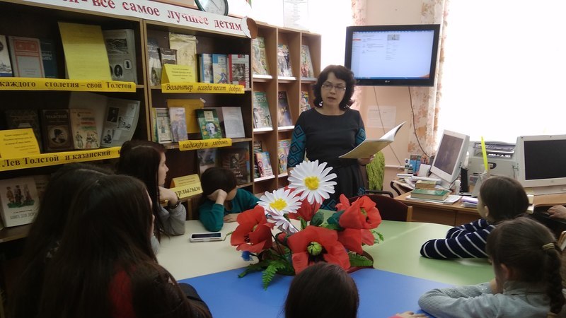 В целях изучения жизни и творчества великого русского писателя Льва Толстого социальными педагогами отделения социальной помощи семье и детям Актанышского комплексного центра «Игелек узеге» для несовершеннолетних получателей социальных услуг было организовано посещение в районную центральную детскую библиотеку.