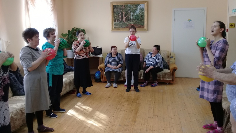 В социально-реабилитационном отделении «Наз» Кукморского комплексного центра социального обслуживания населения «Тылсым» среди обслуживаемых двадцати трех граждан ежедневно проводятся занятия по лечебной физкультуре в рамках технологии «Помоги себе сам». Их возглавляет инструктор Ольга Михайлова.
