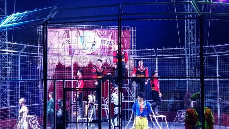Большой Московский Государственный цирк-шапито «Арена-Ягуар» представил вниманию спортивно-развлекательную программу «Полосатый рейс». В программе были такие номера как аттракцион африканских львов и бенгальских тигров, аравийских верблюдов, шотландского пони, евроазиатских рысей, эксклюзивное шоу разноцветных попугаев какаду и ара, а также специальный проект, покоривший сердца миллионов, – воздушно-акробатическая группа «Цунами»: воздушные гимнасты, силовые акробаты, эквилибристы, канатоходцы – 14 мастеров спорта международного класса.