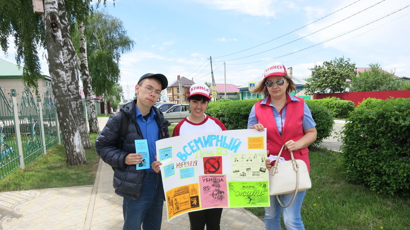 Специалисты изготовили яркий плакат и буклеты, оповещающие о вреде табакокурения. Буклеты раздали буинцам от 16 до 30 лет. Всего акцию поддержали 25 жителей города.
