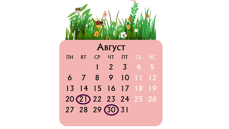 Таким образом, в 2018 году при пятидневной рабочей неделе 21 и 30 августа являются днями отдыха. Продолжительность рабочих дней 20 и 29 августа сокращается на один час.