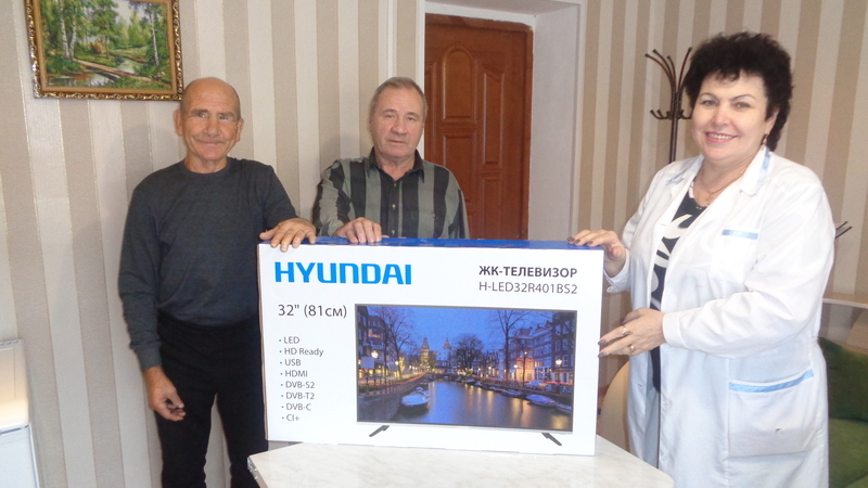Постоянный и любимый гость, попечитель приехала не с пустыми руками. В честь праздника дом-интернат получил в подарок два телевизора, картины в комнату отдыха и сладкие подарки к чаю пожилым людям.