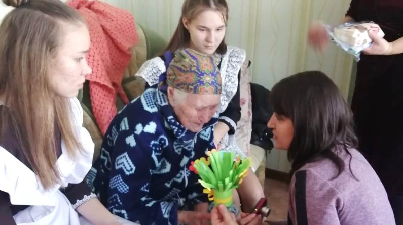 В преддверии Дня Победы и в честь Международного женского дня специалисты Тукаевского комплексного центра социального обслуживания населения «Шафкать» совместно с учащимися Круглопольской средней школы поздравили тружениц тыла Зулейху Сагитовну Гималиеву и Анастасию Павловну Маслову.
