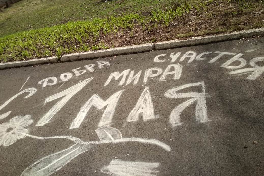 После игр на свежем воздухе, которые прошли на территории учреждения, дети оформили поздравление «Рисунки на асфальте» для всех родных и сотрудников, которые находятся на самоизоляции.