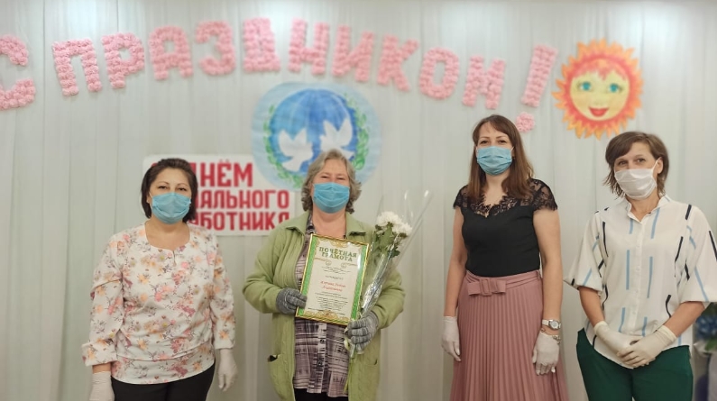 В этом году поздравление и торжественное мероприятие в честь Дня социального работника прошло в необычном формате, в группах из не более 12 человек. Работникам отрасли вручили почетные грамоты и цветы.
