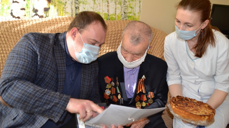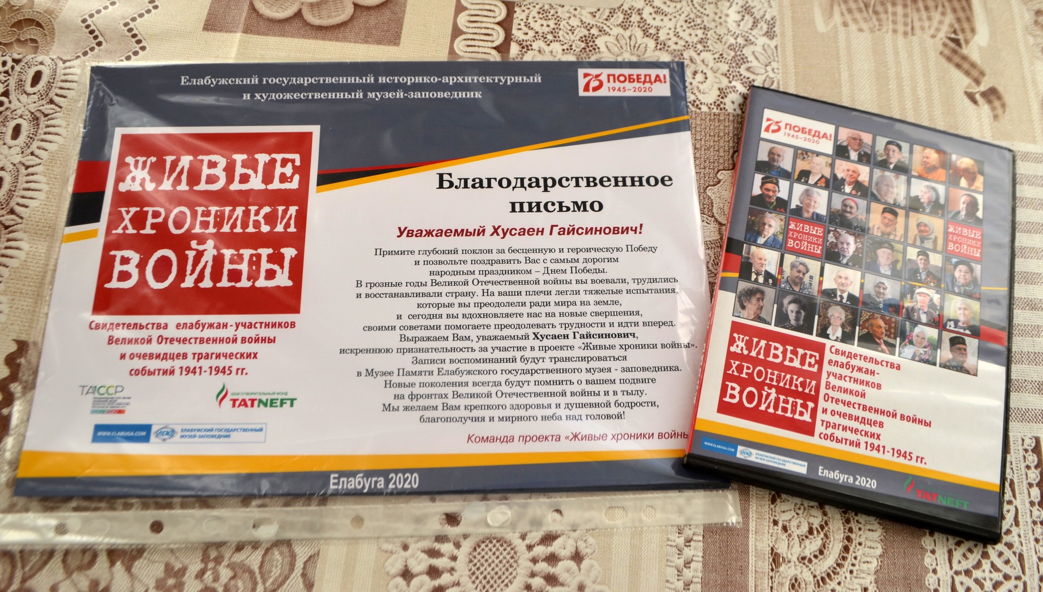 Участнику Великой Отечественной войны Хусаену Гайсиновичу Абунаеву, проживающему в Елабужском доме-интернате для престарелых и инвалидов, вручили благодарственное письмо и диск от команды проекта «Живые хроники войны».