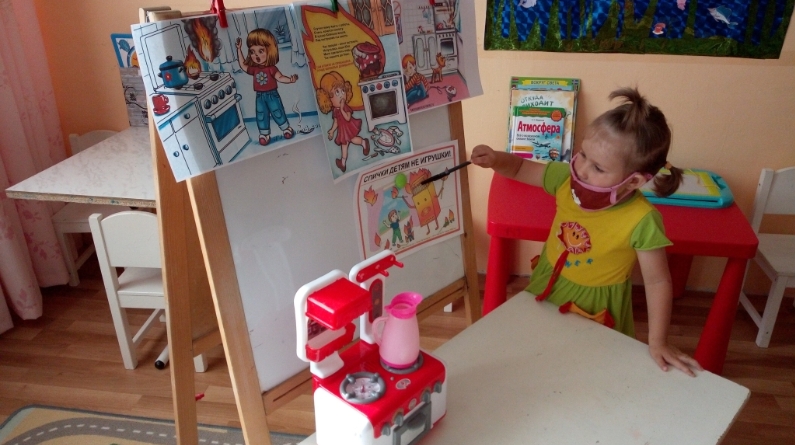 В ходе беседы дети узнали, какие опасности подстерегают их на кухне. Они самостоятельно показывали и называли горячие и пожароопасные предметы, объясняли, какие беды могут случиться, если оставить их без присмотра.