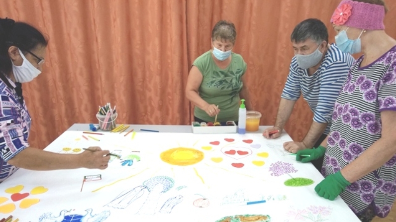 83-летняя получатель социальных услуг рассказала, что в советские года, отправляя почту близким и друзьям, она всегда рисовала в конце послания маленького голубя с письмом. На коллективном плакате она тоже изобразила двух белых птиц.