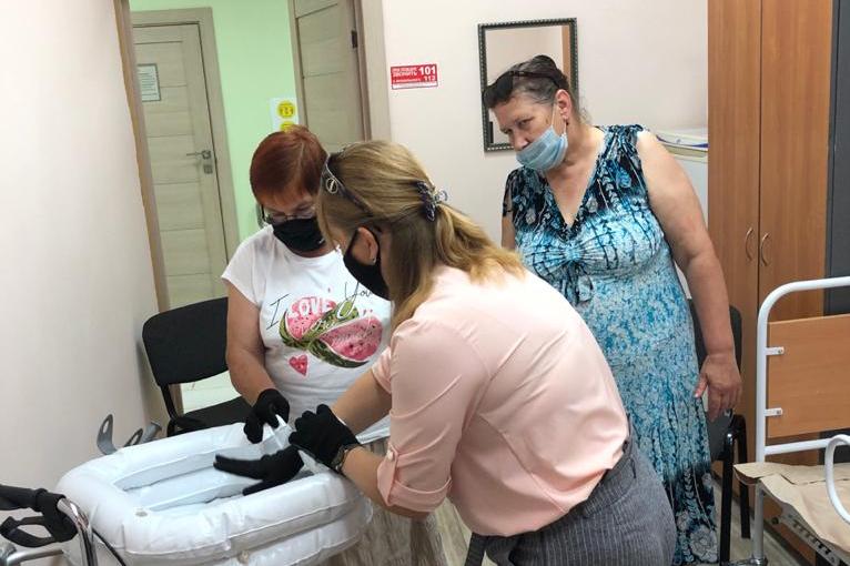 На занятиях специалист по социальной работе проводит обучение по правильному уходу за лежачими больными, пользованию средствами реабилитации и проводит консультирование о мерах социальной поддержки населения.