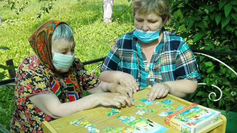 На днях специалист по социальной работе Ольга Бочкарева вместе с маломобильными проживающими играли в игру «Собери картинку». Заключалась она в собирании пазла. Такое занятие является отличным способом тренировки памяти, логического мышления, воображения, развития наглядно-образного мышления. Пазлы тренируют усидчивость, концентрацию внимания, а также координацию движений. Кроме того, работа с мелкими деталями способствует развитию мелкой моторики рук.