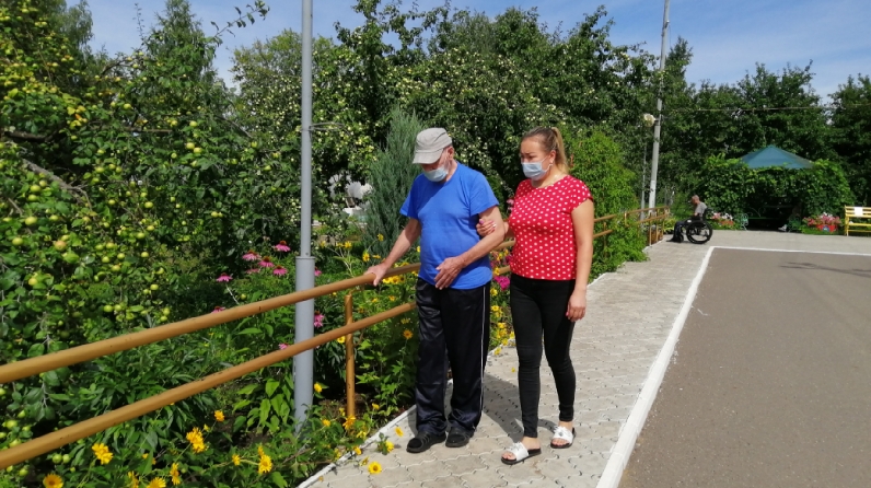 Известно, что ограничение движения отрицательно сказывается на функционировании желудочно-кишечного тракта и мозговой деятельности. Ежедневные прогулки на свежем воздухе – это залог крепкого здоровья. Выходы на свежий воздух – важная часть распорядка дня получателей социальных услуг. Двигательная активность способствует процессу реабилитации пожилых и инвалидов. Прогулки держат мышцы в тонусе, благотворно сказываются на кровообращении.