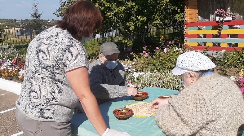 В Верхнеуслонском доме-интернате для престарелых и инвалидов ежедневно на свежем воздухе с маломобильными подопечными проводятся различные мероприятия. Так, вчера с проживающими провели игру-упражнение «Задание для Золушки».