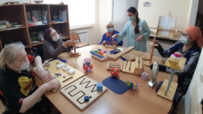 В целях восстановления двигательной активности верхних конечностей, элементарных бытовых, технических и интеллектуальных навыков, развития мелкой моторики рук реабилитанты выполнили упражнения на многофункциональном комплексе «ДОН». Получатели социальных услуг заметили, что в результате занятий проходит онемение, уменьшаются судороги в руках, улучшается координация движений.