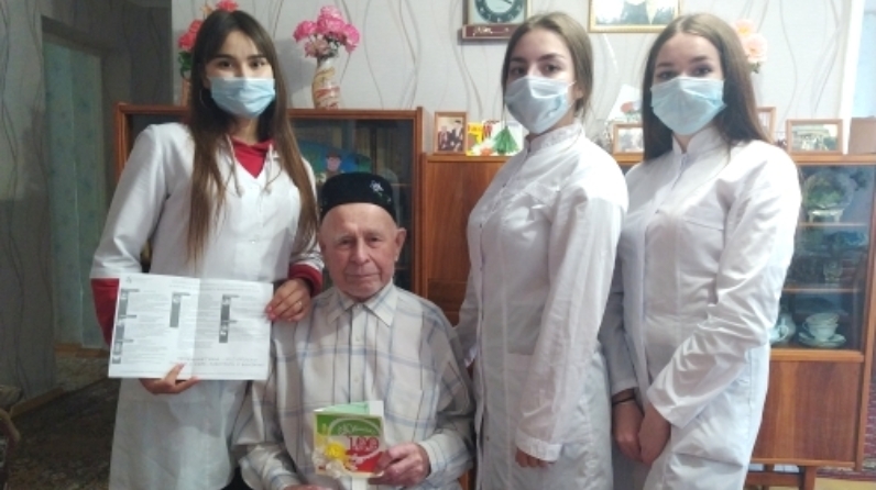 В ходе душевной беседы с ветераном, которого волонтеры навещают каждый месяц, выяснилось, что социально-бытовых проблем у Мунира Муллахметовича нет, он окружен вниманием и заботой близких. Будущие медработники измерили пожилому человеку артериальное давление, послушали сердце, а также провели беседу о необходимости соблюдения мер предосторожности в связи с новой коронавирусной инфекцией.
