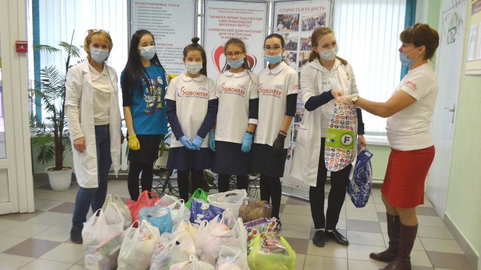 В рамках декады пожилых подопечных дома-интерната чествовали и волонтеры гимназии № 1. Вот уже на протяжении нескольких лет к 1 октября ребята приносят пожилым людям подарки: носочки, платочки, сладости к чаю и др.