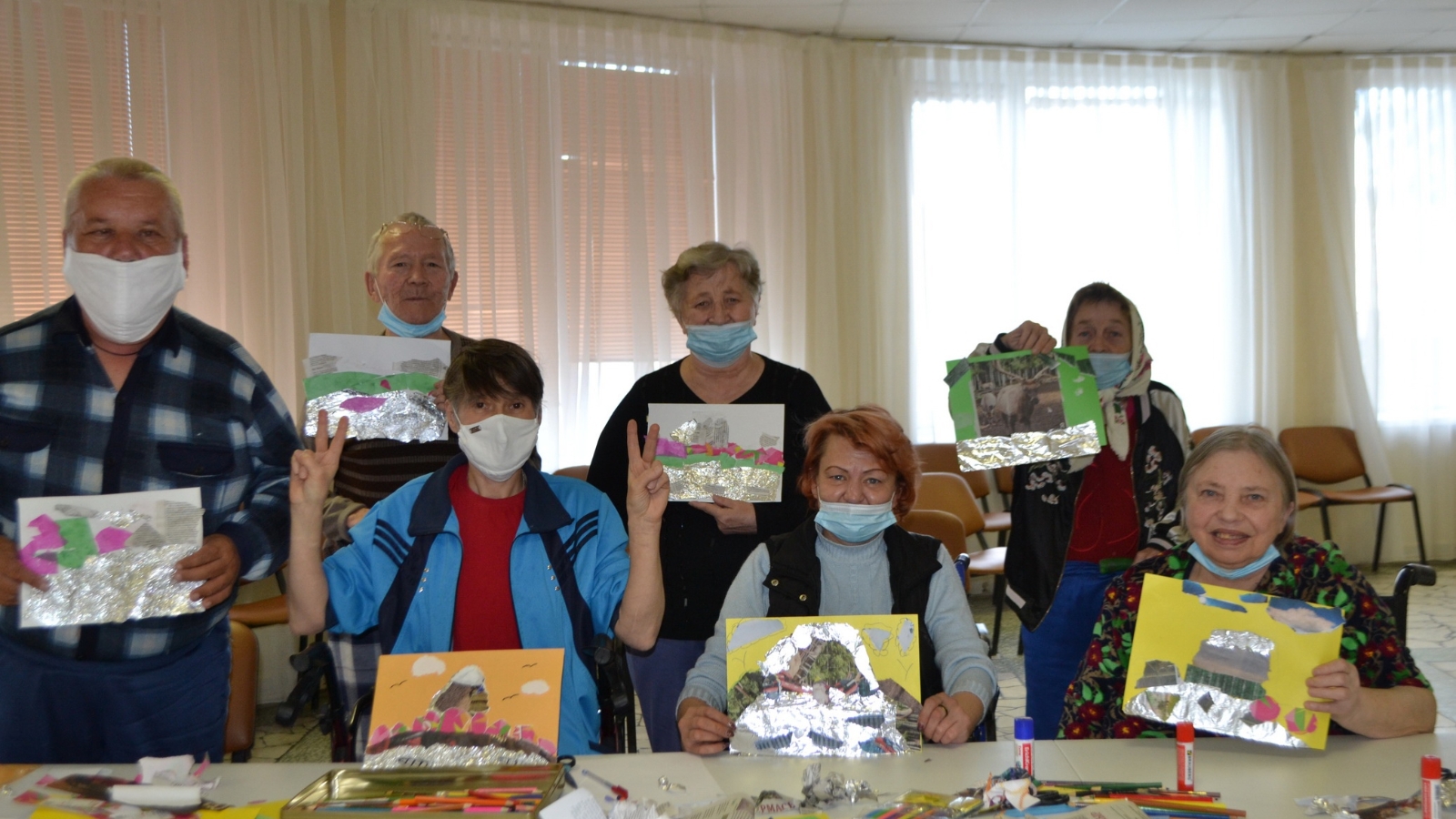 На этот раз подопечные дома-интерната в режиме онлайн сделали коллаж «Японский пейзаж», используя самые простые материалы: цветную бумагу, газеты, журналы, фольгу, клей, ножницы, ручки и фломастеры. В итоге у всех получились замечательные работы.