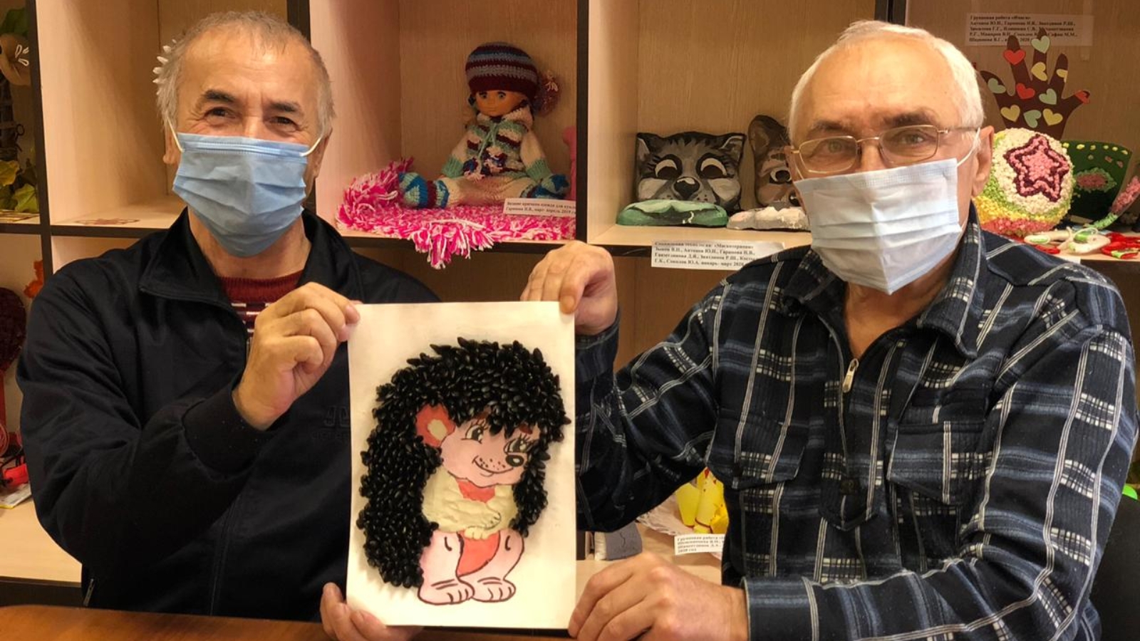 В Мензелинском доме-интернате для престарелых и инвалидов прошло групповое занятие по созданию объемной аппликации с использованием пластилина и семечек.
