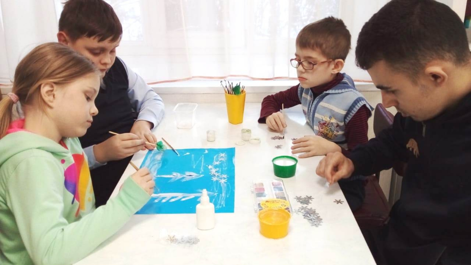 Завершилось занятие мастер-классом по нетрадиционной технике рисования – дети рисовали стразами и кристаллической солью.