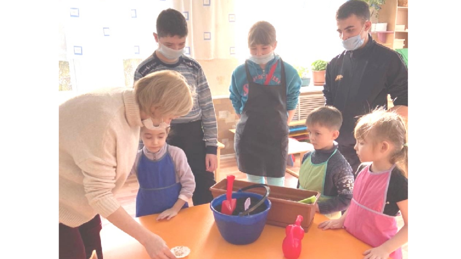 На занятии дети познакомились с технологией подготовки земли и семян, посмотрели календарь дачника, научились определять сроки посадки семян, отсортировали семена цветочных и овощных культур. Участвуя в практической деятельности, дети получили навыки ухода за цветами, познакомились с процессом роста растений.