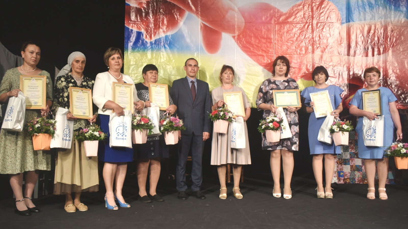 18 июня в Буинском государственном драматическом театре состоялось торжественное мероприятие для социальных работников. С профессиональным праздником работников социальной сферы поздравили и. о. руководителя исполнительного комитета района Ленар Шакирзянов, начальник отдела социальной защиты Ляйля Камалова и председатель местной общественной организации ветеранов (пенсионеров) Зяугария Хуснетдинова.