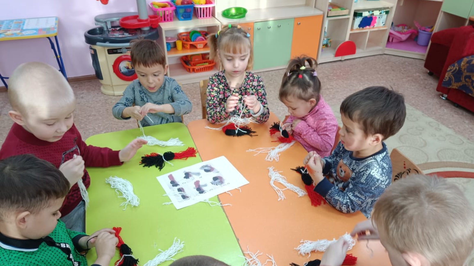 Целями мероприятия были знакомство детей с техникой изготовления птиц из пряжи, развитие мелкой моторики рук, художественного вкуса, внимания, интереса к творчеству.