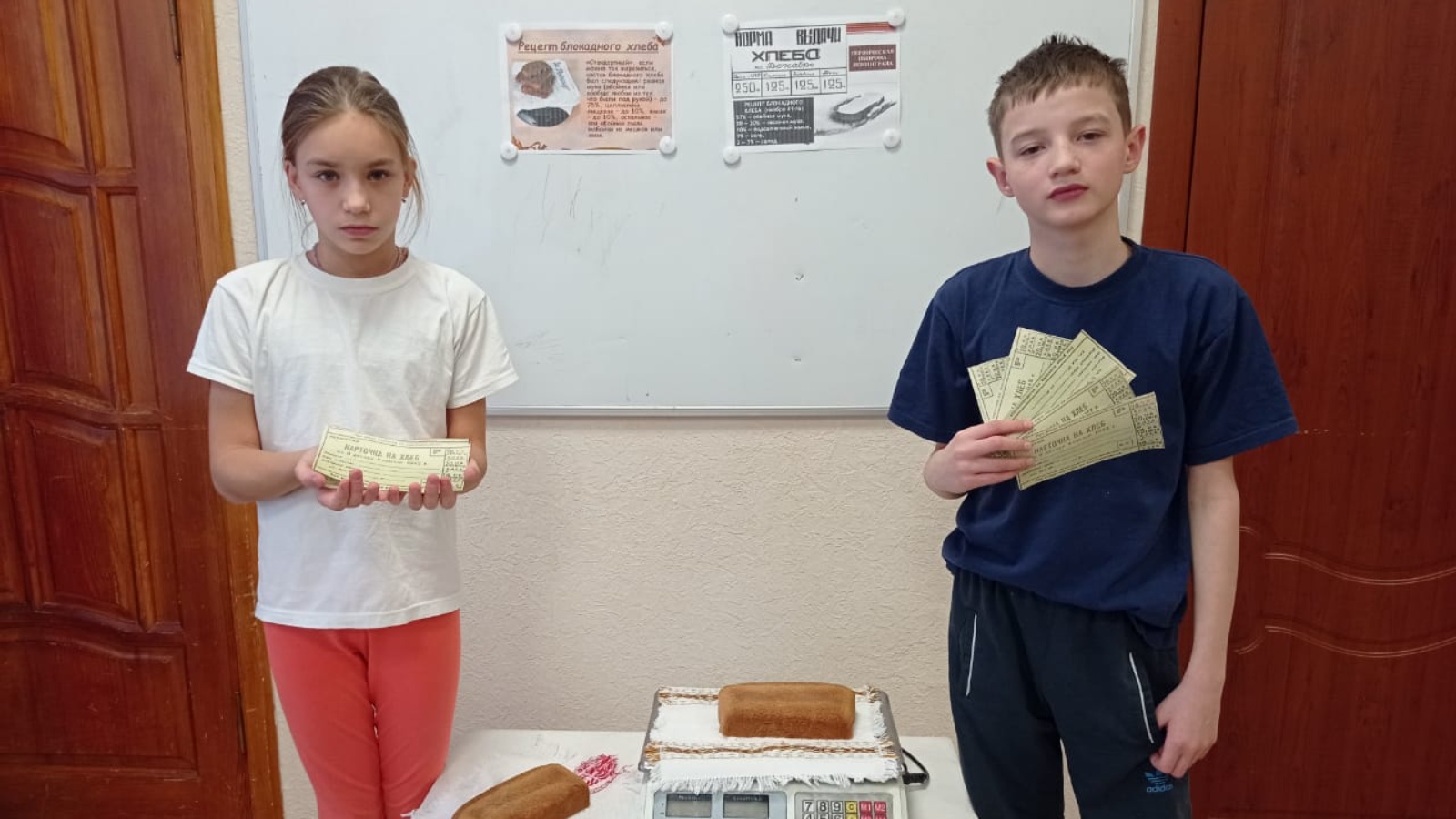 Главным символом урока был кусок хлеба весом 125 граммов – так воспитанникам продемонстрировали суточную норму хлеба в период блокады. Также детям показали презентацию «Горький хлеб войны», они читали справочные материалы, решали кроссворд о подвиге четырех ленинградцев.