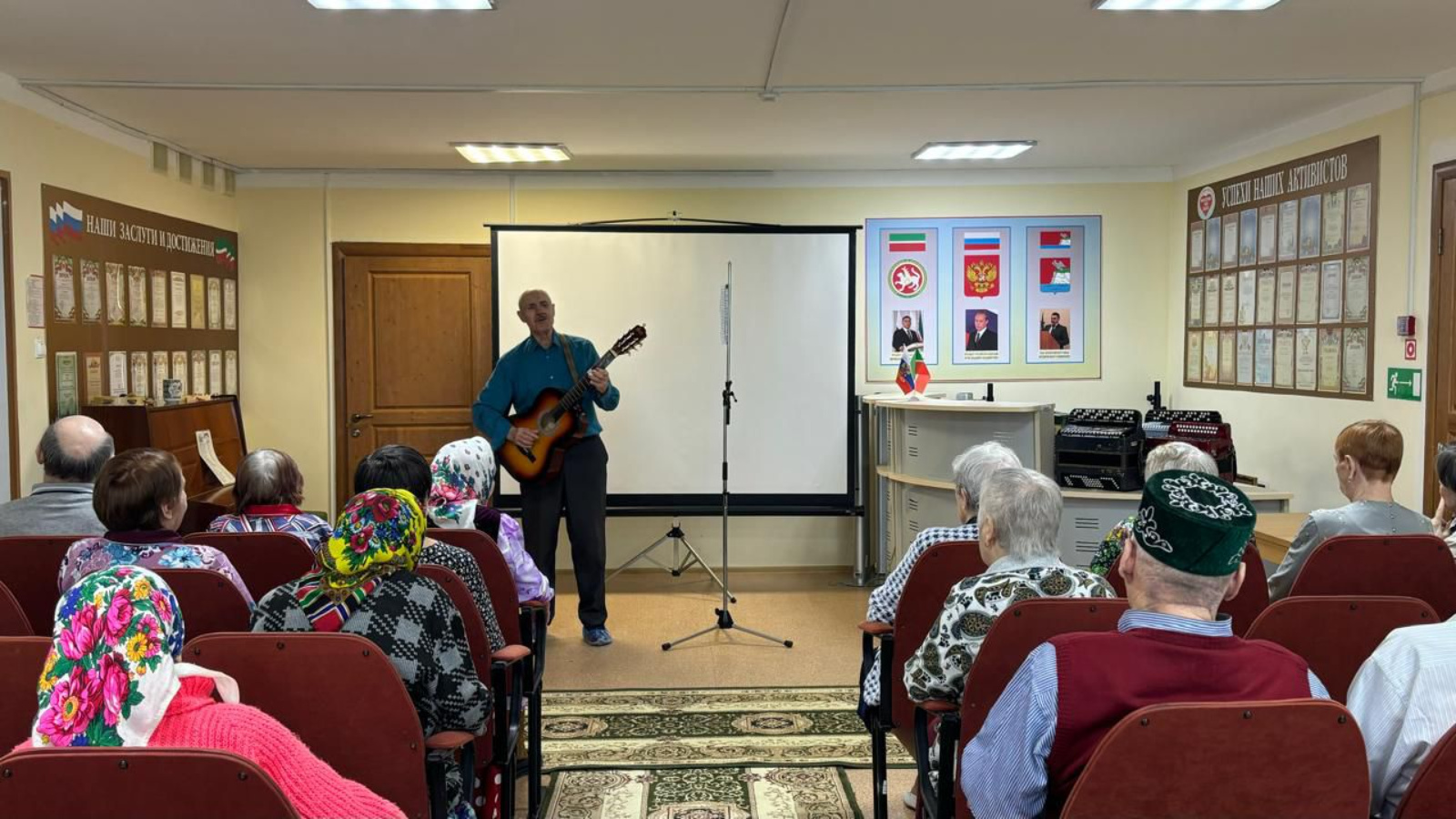 Своего давнего друга, поэта-песенника Евгения Скрябина из Казани принимали в Верхнеуслонском доме-интернате для престарелых и инвалидов. Удобно разместившись в актовом зале, проживающие с большим удовольствием слушали его песни о родине, дружбе, любви, чести и достоинстве, подпевали.
