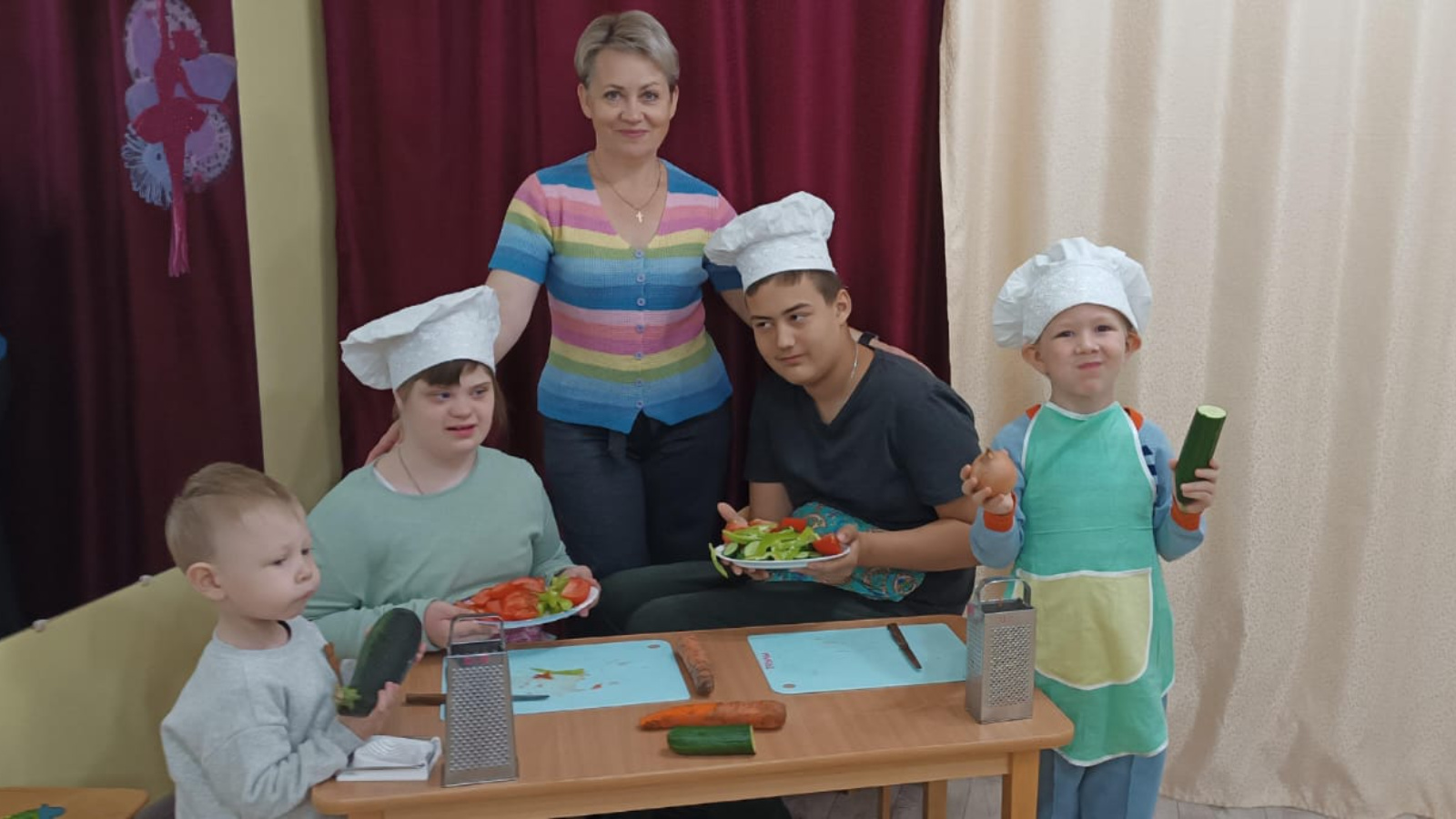 В Реабилитационном центре для детей и подростков с ограниченными возможностями «Возрождение» в Бугульминском районе состоялся кулинарный поединок «Овощное ассорти». Ребята участвовали в викторине, угадывали плоды на ощупь, учились готовить салаты из овощей.