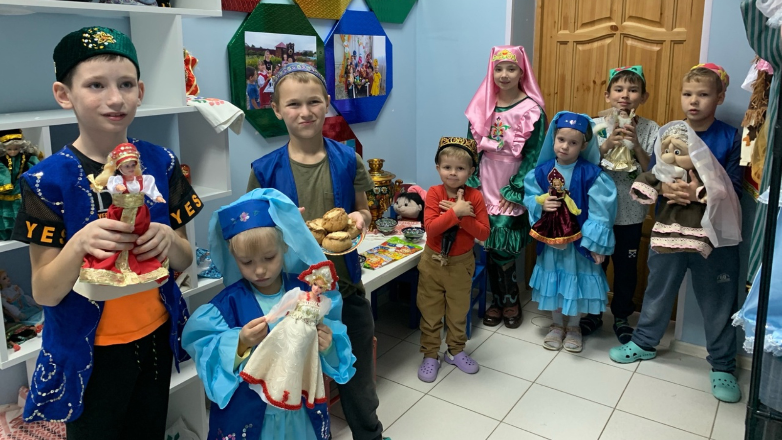 На занятии «Национальная мозаика» дети увлеченно слушали воспитателя Альбину Хамитову, рассматривали экспонаты. Многие старинные вещи они видели впервые, поэтому с большим интересом разглядывали их. Дети увидели красивую вышивку, национальные сапожки, кукол в национальных костюмах и многое другое.