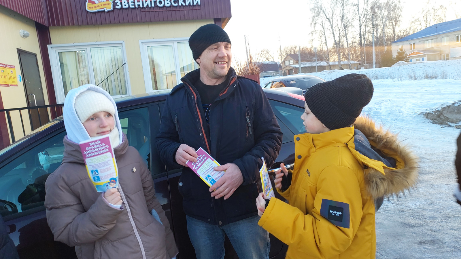 На улицах поселка ребята раздавали прохожим листовки, напоминали, как правильно вести себя на дорогах, пешеходных переходах, в общественном транспорте. Дети отмечали, что использование наушников и мобильного телефона недопустимо при переходе проезжей части.