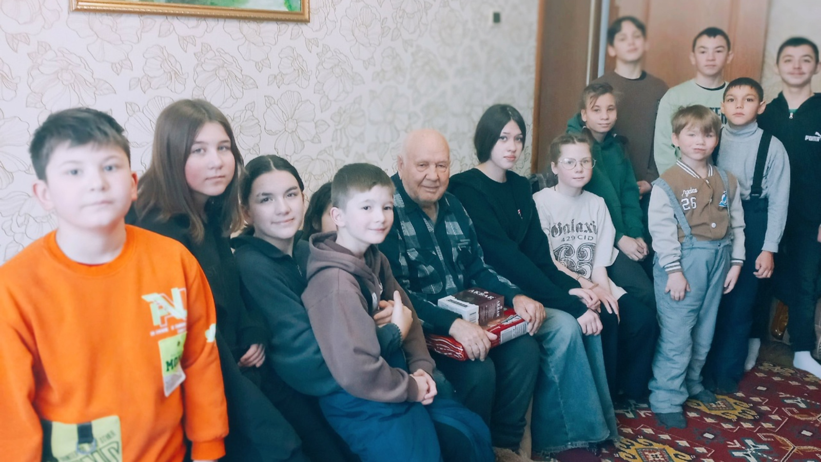 Ветеран рассказал детям о тяжелых испытаниях, которые пришлось пережить ему и его соотечественникам. Дети внимательно слушали рассказ и остались под сильным впечатлением. Вилю Хасанову они приготовили трогательные стихотворения, спели военную песню.