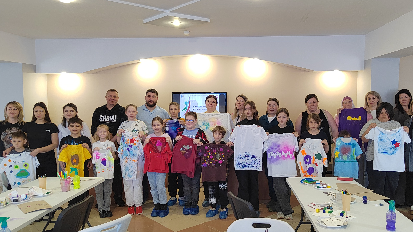 В рамках швейной мастерской дети и родители расписали футболки.