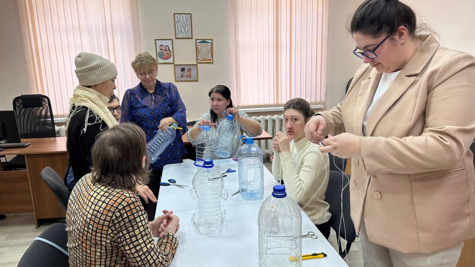 Молодые люди научились превращать обычные пластиковые бутылки в полезные кормушки для птиц. Под чутким руководством специалистов ребята вырезали отверстия и крепили веревочки. Готовые кормушки дружно развесили в посадке около здания центра.