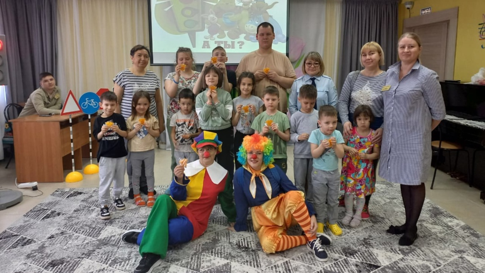 Героями мероприятия были клоуны Болтик и Ролик. Вместе с ними воспитанники Реабилитационного центра для детей и подростков с ограниченными возможностями «Солнышко» г. Набережные Челны повторили правила дорожного движения, вспомнили значения сигналов светофора, дорожные знаки, правила перехода через проезжую часть. Также дети посмотрели познавательный мультфильм.