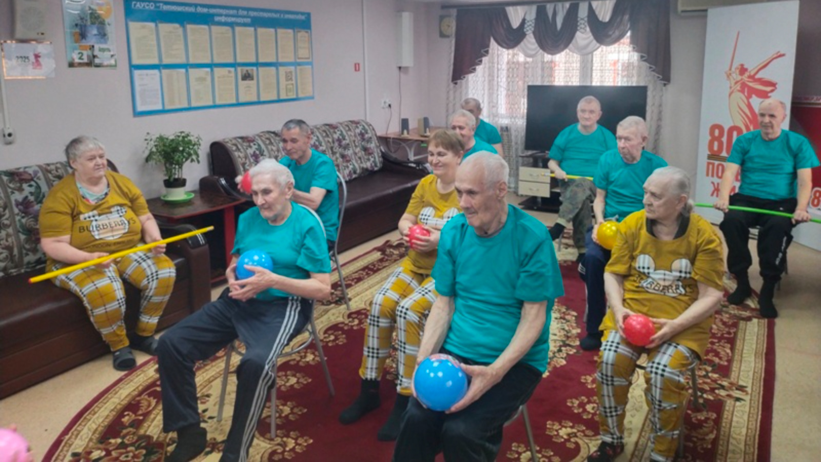 В рамках реализации программы «Активное долголетие», которая внедрена по федеральному проекту «Старшее поколение» национального проекта «Семья», в Тетюшском доме-интернате для престарелых и инвалидов разработали внутреннюю программу «Перезагрузка». Одной из ее составляющих является физкультурно-оздоровительная деятельность с получателями социальных услуг.