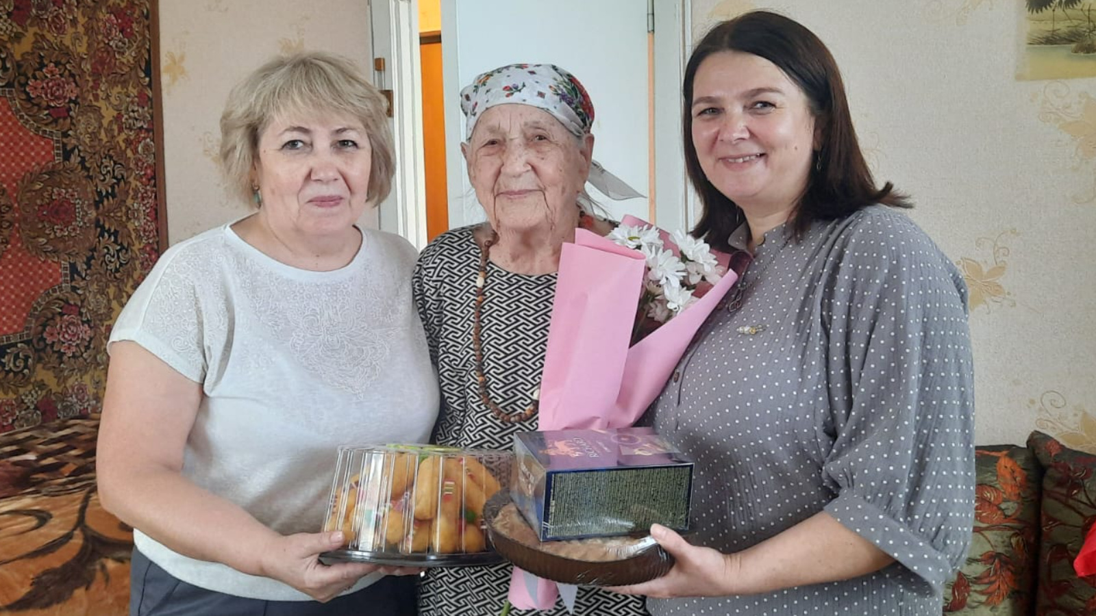 С этой замечательной датой именинницу поздравили сотрудники центра социального обслуживания. Долгожительнице пожелали крепкого здоровья, активного долголетия, чуткого и заботливого окружения и внимания родных и близких.