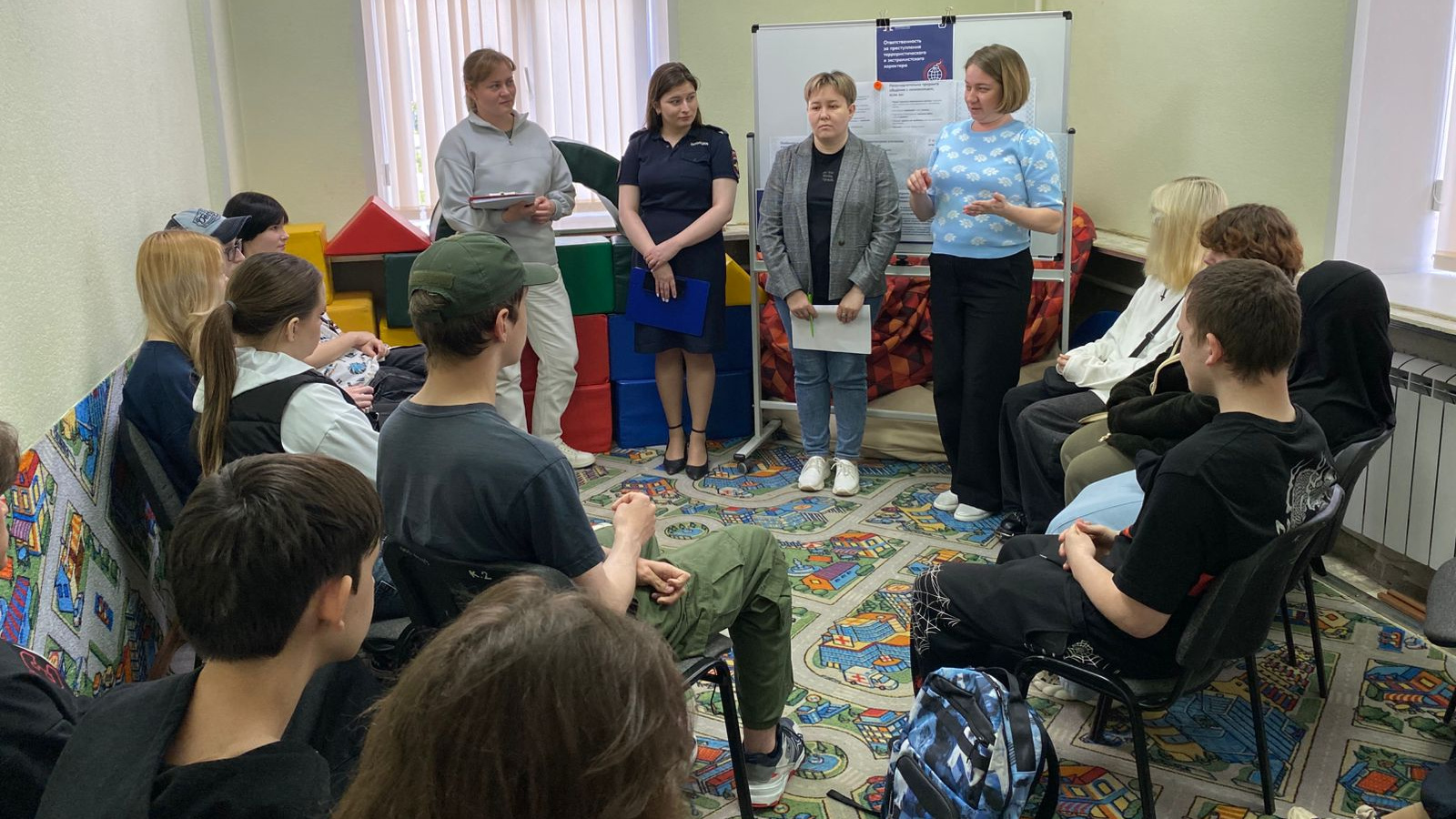 Специалист по социальной работе совместно с приглашенными представителями правовых органов провели для подростков ситуационный тренинг с использованием методических ресурсов Центра изучения сетевого мониторинга молодежной среды.