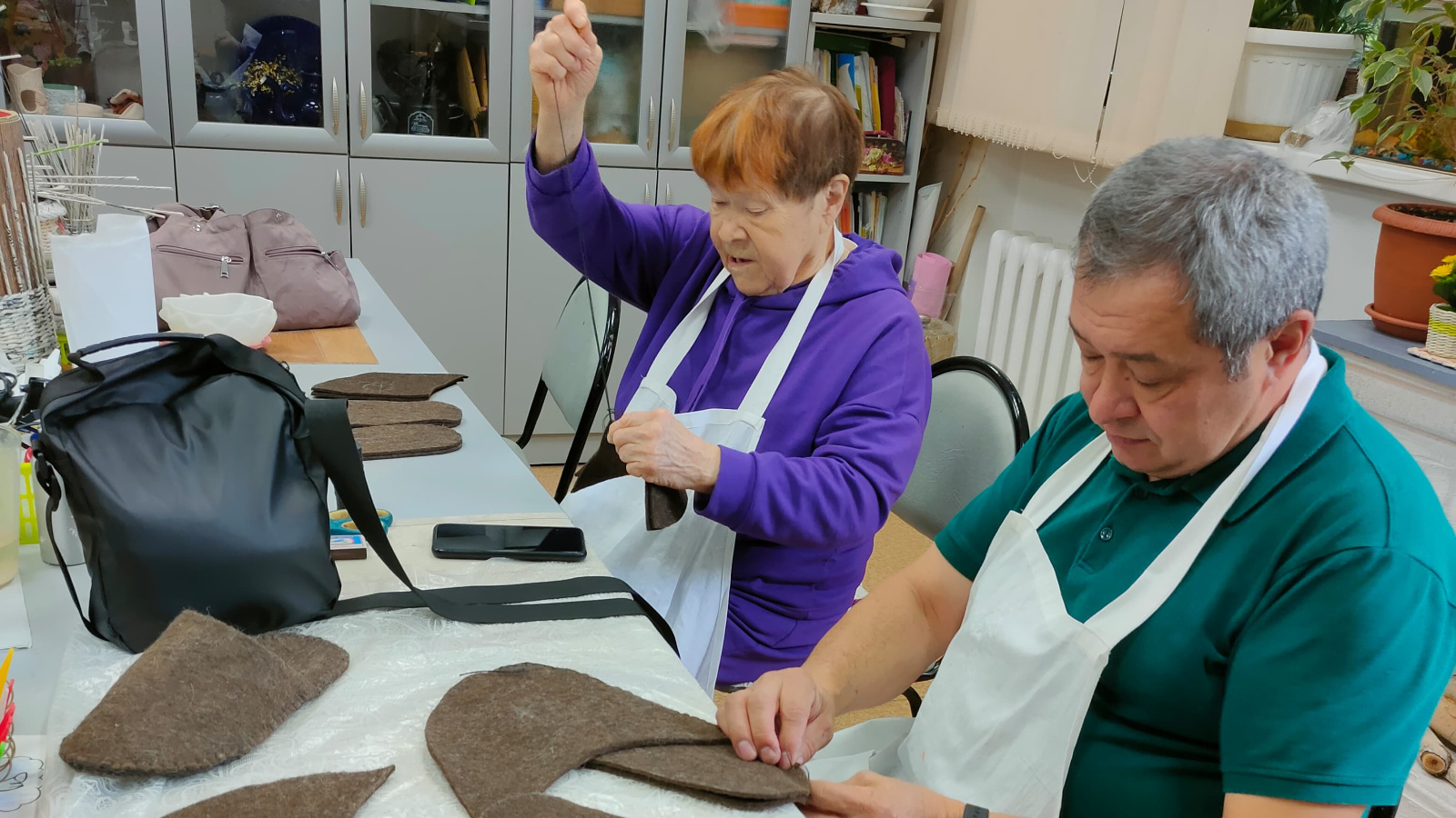 Специалист продемонстрировал готовые изделия – тапочки, изготовленные из войлока. Участники мероприятия получили рекомендации по пошиву изделий и активно включились в работу.