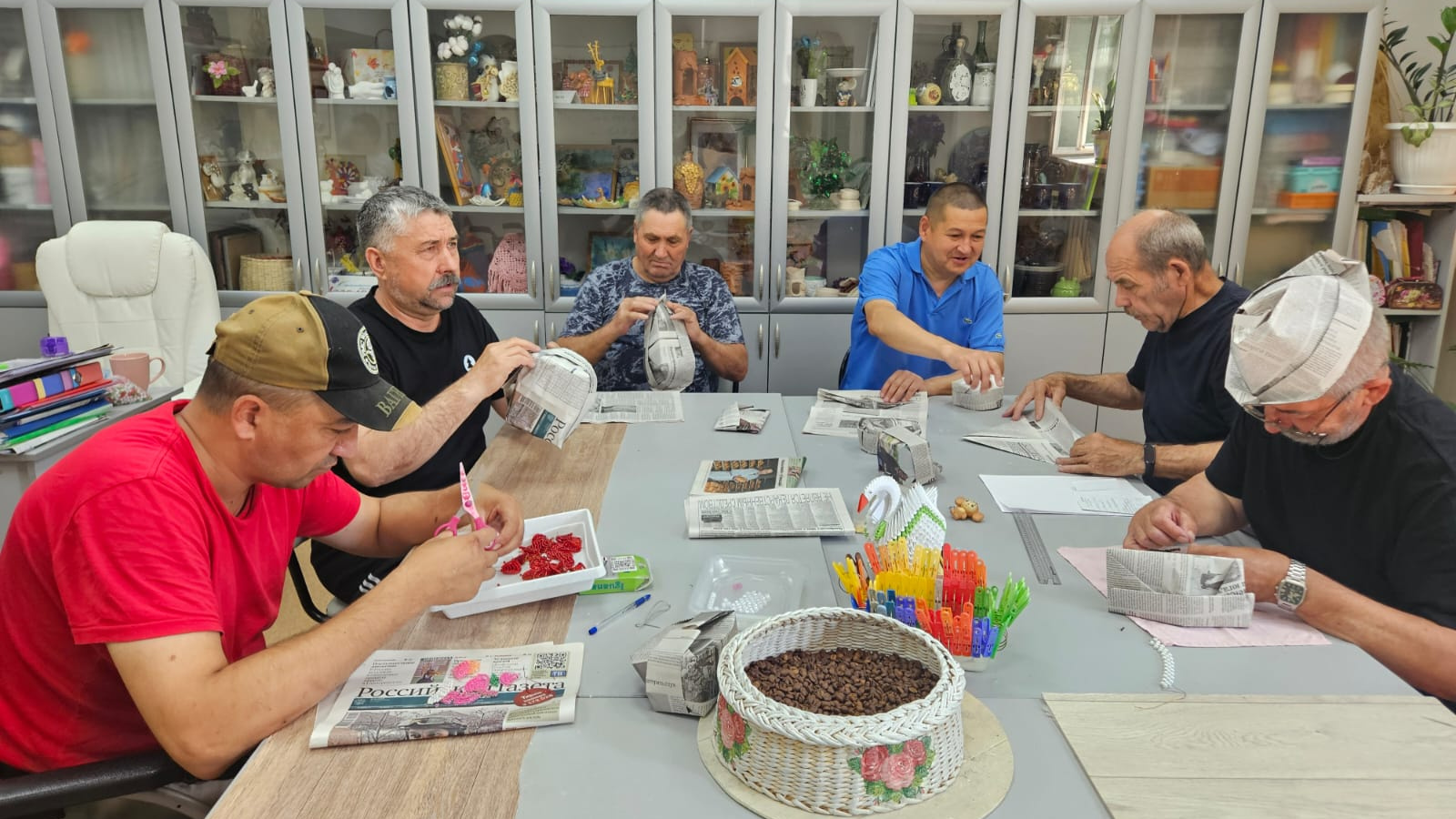 Инструктор по труду вместе с участниками вспоминали историю советского головного убора. В ходе занятия получатель социальных услуг Рифать Хуснутдинов продемонстрировал разные способы складывания шапок из газет.