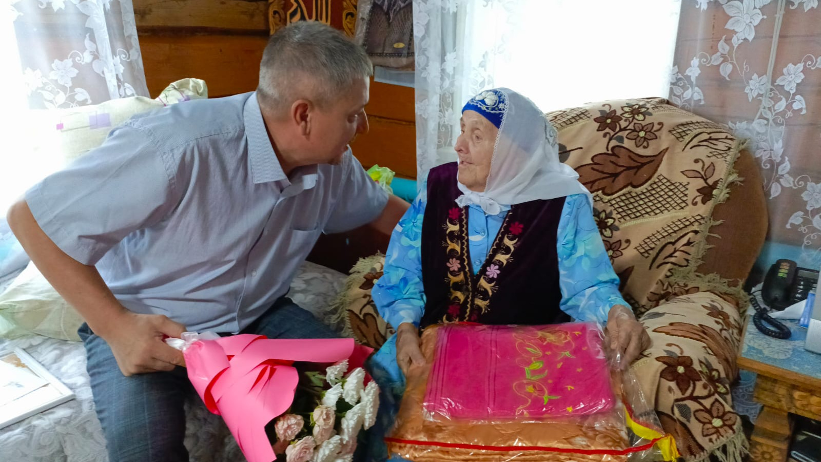 В Балтасинском районе 95-летний юбилей отметила получатель социальных услуг надомного отделения Комплексного центра социального обслуживания населения «Наз» Рафиса Гиззатуллина. Юбиляру вручили персональное поздравление от имени Президента Российской Федерации Владимира Путина, а также благодарственное письмо и ценные подарки от имени главы Балтасинского муниципального района, сельского поселения, отдела социальной защиты, последнего места работы.