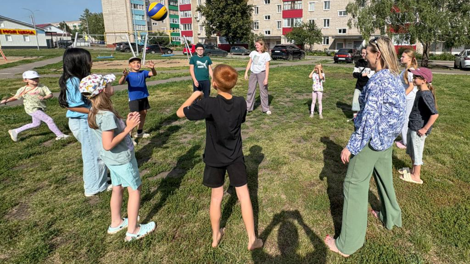 Программа включала разнообразные спортивные конкурсы и подвижные игры, знакомые многим взрослым еще с детских времен. Дети вместе с родителями собрались на своей дворовой площадке, где активно участвовали в играх, демонстрируя сплоченность семей и искреннее удовольствие от совместного активного отдыха.