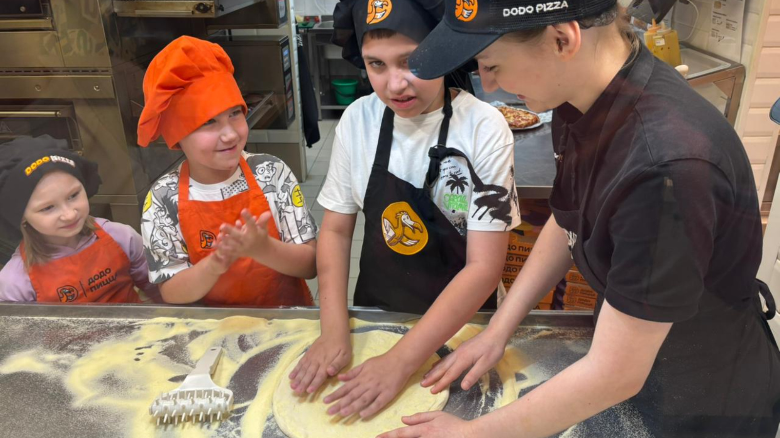 При поддержке сети ресторанов быстрого питания «Додо-пицца» дети смогли окунуться в атмосферу профессиональной кухни и самостоятельно приготовить пиццу под руководством опытных специалистов.