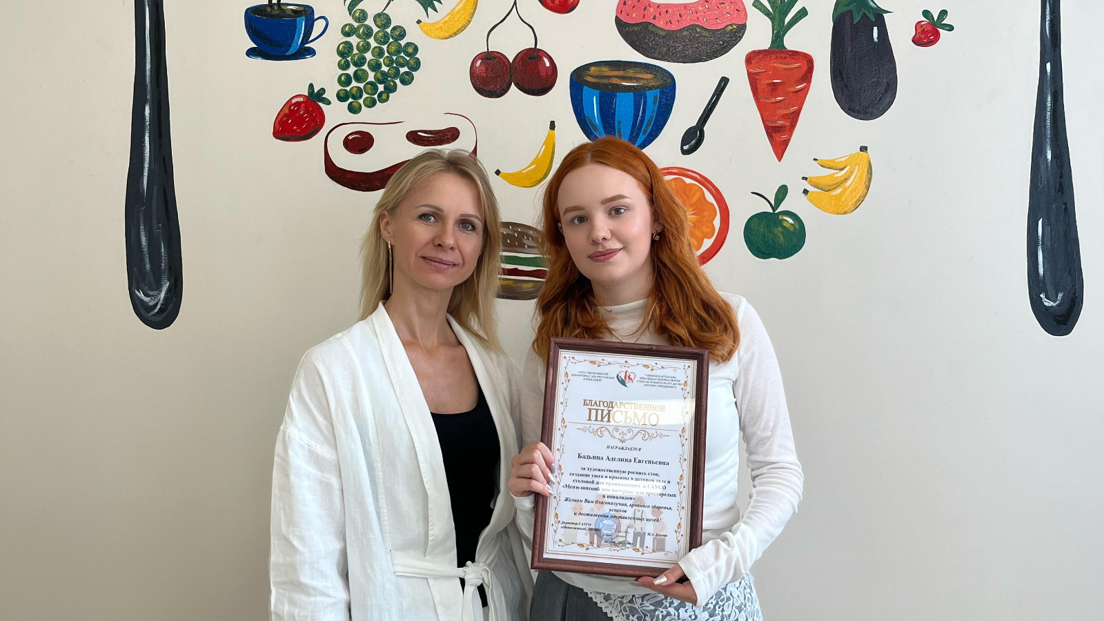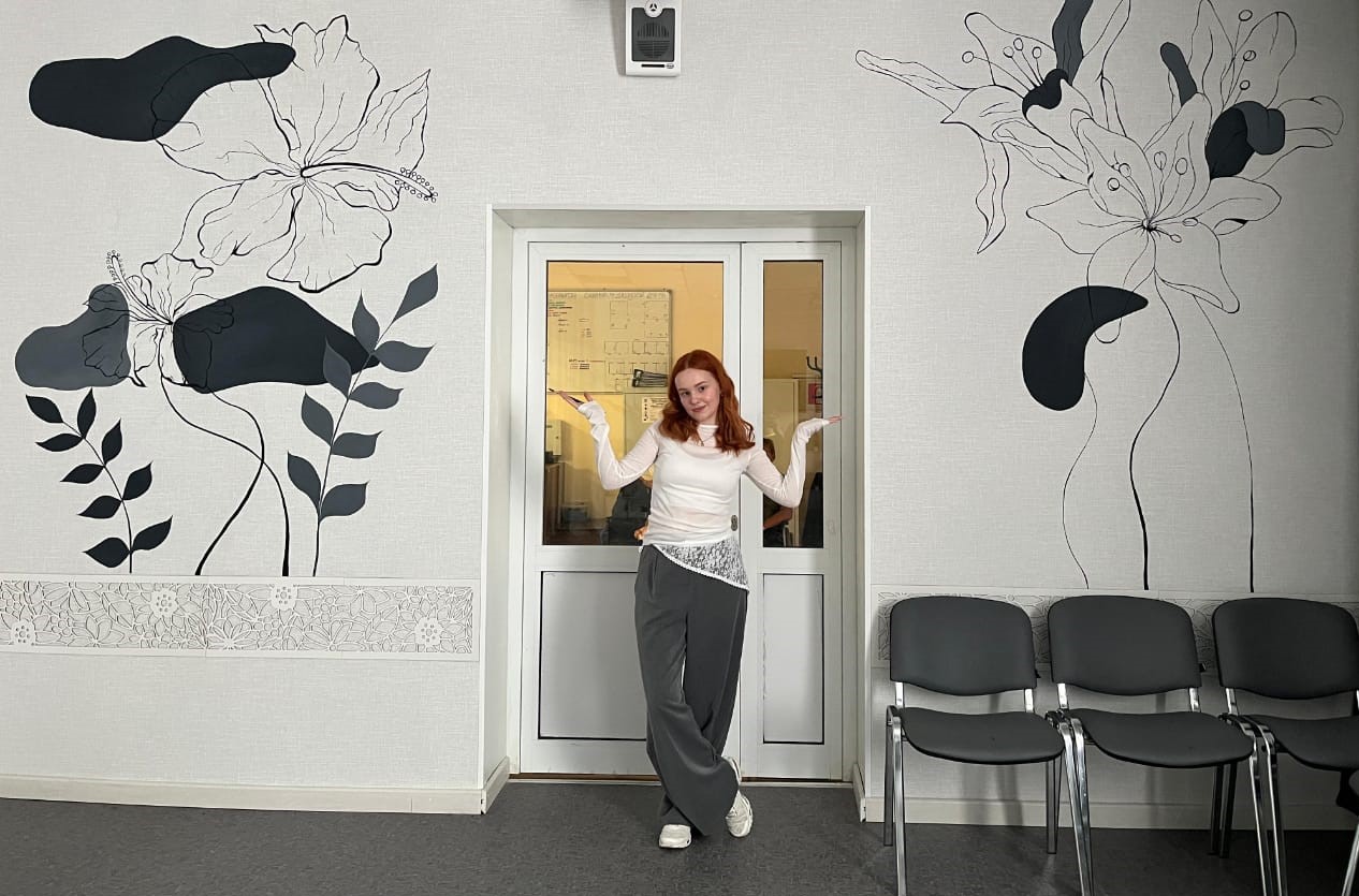 Аделина Бадьина работала по заранее согласованному эскизу. В актовом зале появились изящные цветы, которые создают ощущение простора и умиротворения. В столовой создана композиция, отражающая ее назначение: на одной стене появились столовые приборы и теплое пожелание для проживающих, на второй – яркая композиция для поднятия аппетита и настроения. Теперь новыми стенами любуются и проживающие, и персонал учреждения.