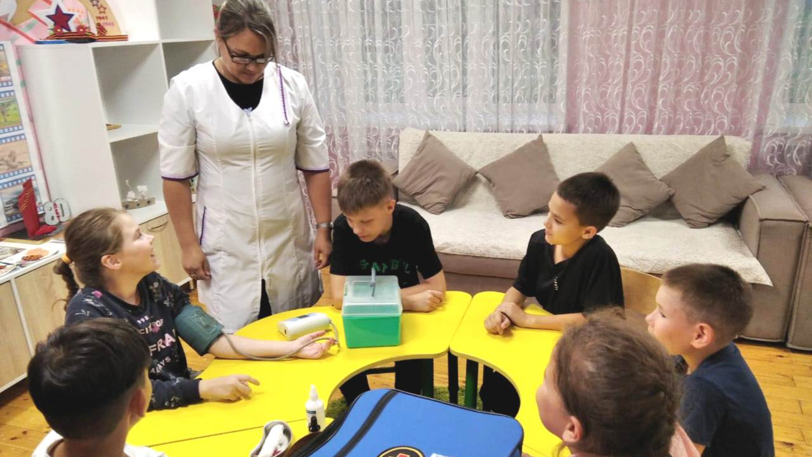 В рамках проекта «Билет в будущее» воспитанники Социального приюта для детей и подростков «Мечта» Аксубаевского района познакомились с профессией медицинского работника. Медицинская сестра Ольга Комарова провела для них увлекательное занятие.