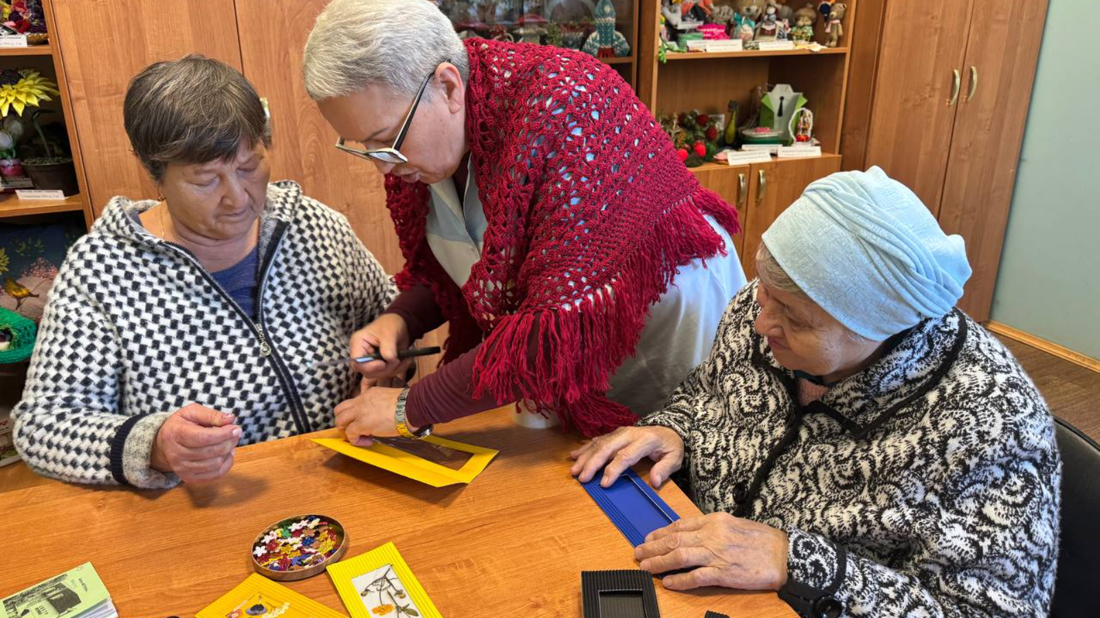 Получатели социальных услуг с энтузиазмом выбирали цветы для своих будущих творений. Многие из них впервые использовали дары природы в творческом процессе. Каждый участник самостоятельно определял цветовую палитру и составлял композицию, создавая уникальные закладки, отражающие их индивидуальность. Некоторые участники ощутили себя настоящими мастерами цветочного дела, увлеченно экспериментируя с различными сочетаниями и создавая собственные оригинальные закладки.