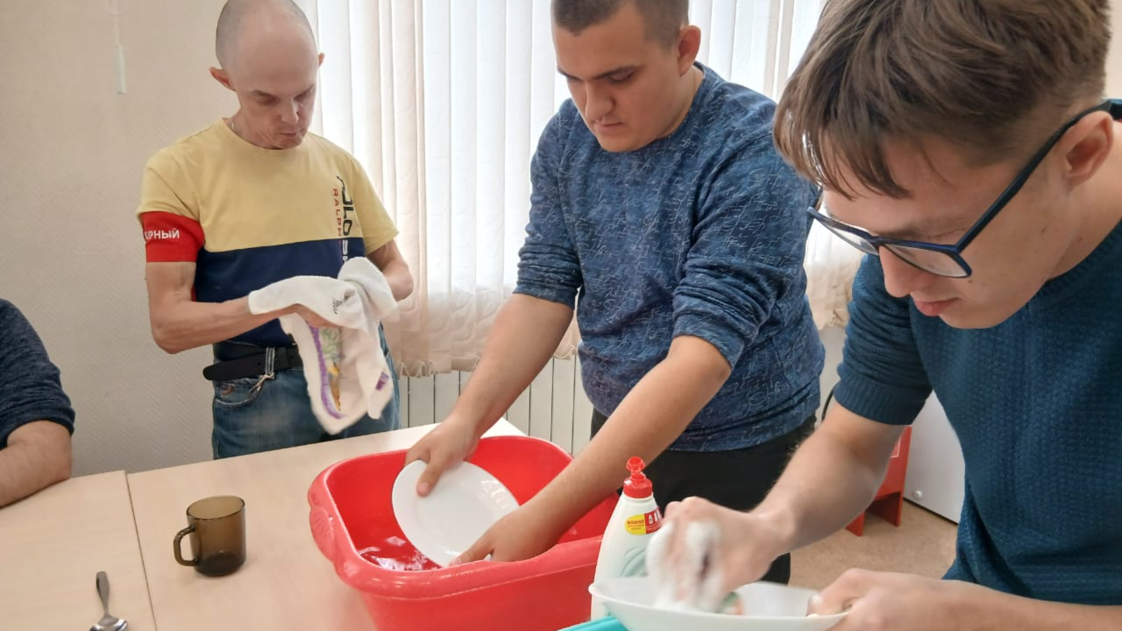 Инструктор по труду Вера Сурова показала, как правильно подготовить посуду к мытью, какие средства лучше использовать, как избежать повреждений или травм. Особое внимание уделялось правильной организации рабочего места, технике безопасного обращения с моющими средствами, рекомендациям по экономии воды и электроэнергии. Позже участники реализовали полученные навыки на практике, что позволило им почувствовать уверенность и закрепить знания.